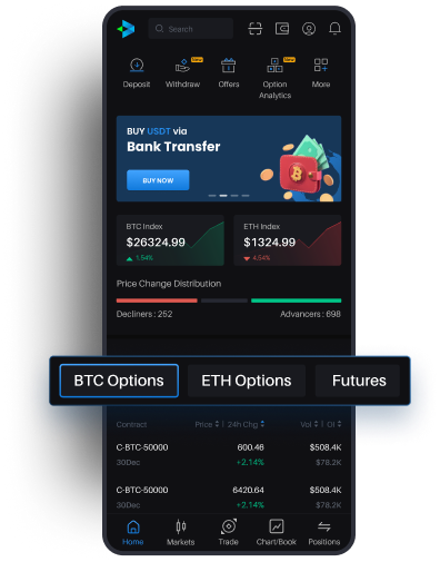 On Delta Exchange, you can choose to trade both call and put crypto options on BTC and ETH with daily expiries, the lowest settlement fees, and the fastest withdrawals!